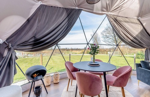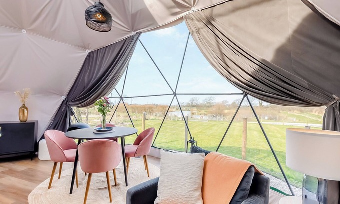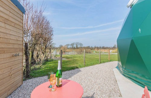 Bedroom 2: Galleried, Double (4ft 6in) Bed. Air conditioning, electricity, bed linen, towels and Wi-Fi included. Welcome pack. Rear garden with patio, garden furniture and firepit. Coarse fishing on-site, £10 per person per day. Angling packages available. Private parking for 3 cars. No smoking. Please note: There is a step in the garden and fenced lakes in the grounds.. Escape to the epitome of glamping in this stunning geo-dome, surrounded by serene landscapes and equipped with top-notch amenities to ensure a memorable stay.