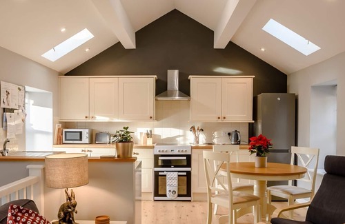 The cottage, upside down by design, has a ground floor double bedroom with en-suite shower room, perfect for a couple. Upstairs is a stylish, open plan living area with vaulted ceilings, windows to both sides and roof lights making this a pleasant light filled space. Externally is a lovely south facing garden, perfect to enjoy a morning coffee or glass of wine at the end of your day. Guests are welcome to bring one dog, although please note the garden is not enclosed. To the front of the cottage is parking for one car.