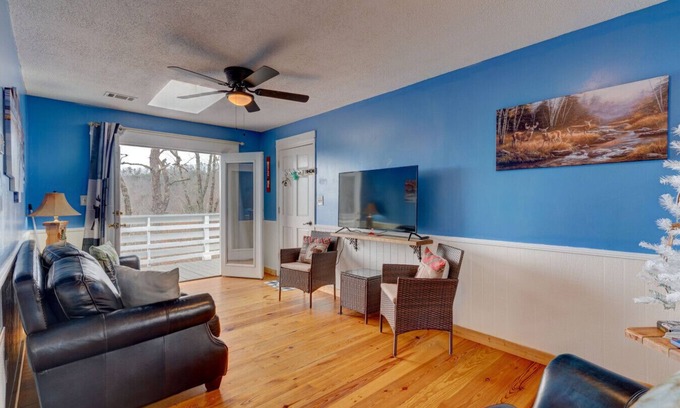 Deer Valley sits on top of the ridge overlooking Dry Creek, and has a beautiful view of several mountains. This 1 BR 1 BA is the perfect getaway for singles or couples. Located in Talking Rock Creek Resort, you'll be surrounded with protected forest and wildlife habitats. The answer to do ______ live there, is yes! There is a huge, elevated wraparound deck that is perfect for relaxing, coffee, drinks, BBQing, and just soaking up nature. All stress will be melted away within 5 minutes of arrival.