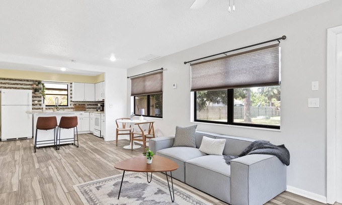 Close to Sebastian Riverfront, Skydiving, Beaches and more. Perfect place for a couples, solo traveler or business traveler. 1 Bedroom, 1 Bathroom unit includes wireless internet, two smart TVs with cable, washer and dryer and huge fenced yard for relaxing. Boat parking available and perfect for a pet. Shared driveway. Attached to main house. Has separate private entrance.