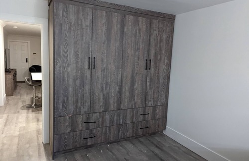 Enjoy your stay at this brand new built 1 bedroom modern suite with upgrades such as built in bedroom cabinets. Kitchen island . 65 inch smart uhd smart TV with Netflix and Amazon prime video included.