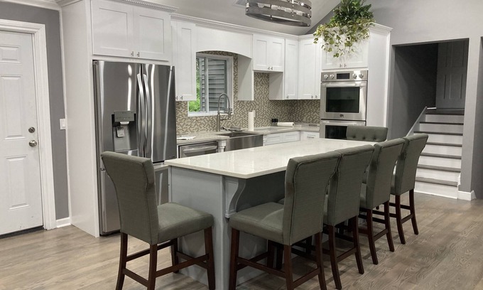 Located in Hopewell Junction, Enjoy an unbeatable mountain-front . location at this 4-bedroom, 2-bath vacation rental house, Brand new renovated interior placed on 4 acres of land perfect for privacy. Comes with a HVAC adjustable temperature and 61' 4k TV.