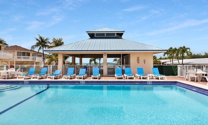 Relaxation is waiting. 1 bedroom 1 bathroom, newly furnished, professionally decorated. Lush landscaping, resort pool with cabana overlooking marina, kayaks, paddle boards and boats, bicycles, fishing off the dock.