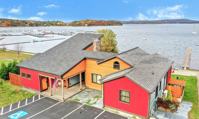 Our 76 West Lakeshore property features three spacious 1,000-square-foot one-bedroom suites, each with a king-size bed. Every suite at Lakeshore Vermont includes a fully equipped kitchen with a microwave, refrigerator, and dishwasher, as well as cable TV and WiFi. A sofa bed in each suite adds extra sleeping capacity. Guests can unwind on multiple porches, offering stunning views of the lake and mountains. Perfect for a relaxing getaway!