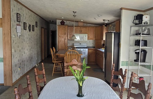 Castleton is waiting for you at this 3-bedroom mobile home. This adorable property features 1 king bed, 1 queen bed, and 1 twin bed, ensuring a pleasant stay for all guests. With amenities like AC, iron, and heating, your comfort is superbly taken care of. Feel free to reach out to us during your stay - we're happy to suggest local spots to check out. No need to back up with th circular driveway. Has plenty of room to bring whatever outdoor toys you are planning on using. From boats snowmobiles and almost everything in between, it's easy to get in and out.