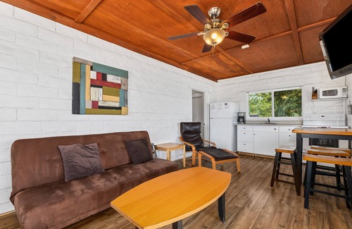 The Upper Main House is a comfortable, spacious 2 Bedroom/1 Bath. Enjoy a large kitchen with bar seating, A/C, central heat, carport parking at your doorstep, granite countertops, remodeled bathroom, new carpet Summer 2015, WiFi and satellite TV.