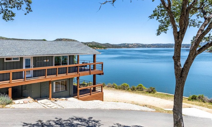 The Main House features an upper and lower unit with separate entries. The units do not share any common space so you’ll have the benefits of two kitchens, two living rooms and two large wrap around decks with amazing lake views. Stay at the Main House at LandsEnd and get the most prominent unit on the 5 acre property. You’ll be in the middle of all the fun with the best 180 degree view of the lake. This house is perfect for a family that wants to vacation together but also wants the added privacy of a separate unit with additional space.