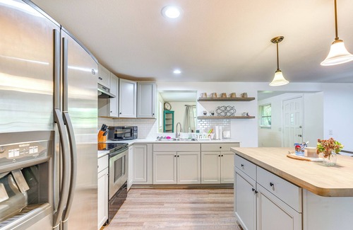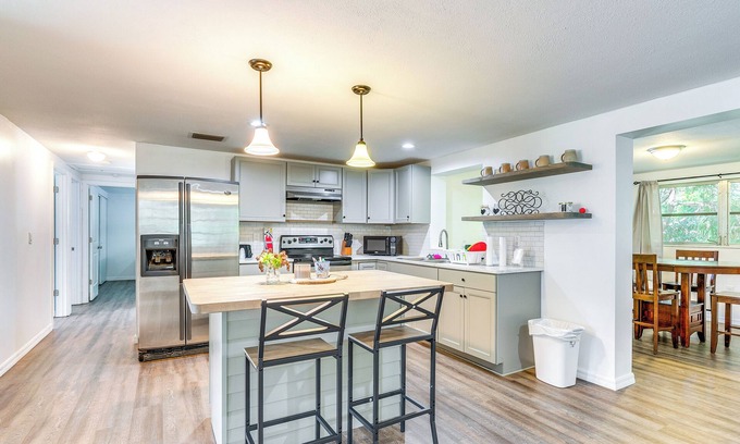 Kayaking over turquoise springs, swimming with manatees, and golfing under the Florida sun await at this Homosassa vacation rental. This 3-bedroom, 2-bathroom home offers an updated interior, a spacious tree-lined lot, and a location just a mile from a boat ramp. Adventures in Crystal River and mermaid shows at Weeki Wachee Springs State Park are a short drive away.