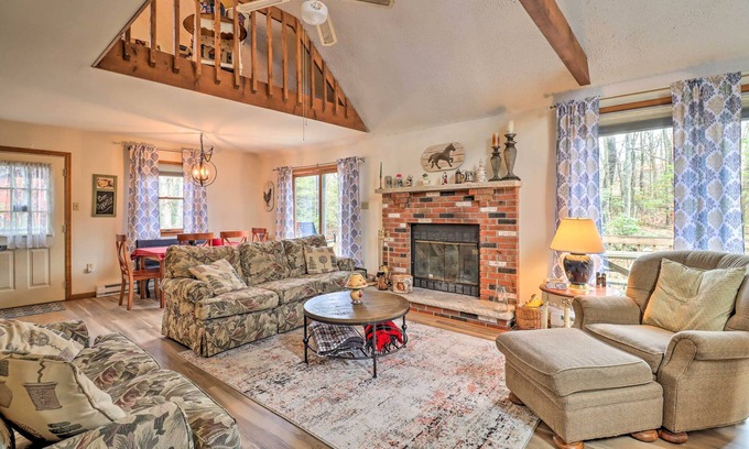 ~ 1 Mi to Lake: Secluded Poconos Home w/Decks is located in Jim Thorpe. ~ 1 Mi to Lake: Secluded Poconos Home w/Decks provides accommodation, featuring Balcony/Terrace, Sports/Activities, Fireplace/Heating, among other amenities. This House features Balcony/Terrace, Sports/Activities, Fireplace/Heating, to make your stay a comfortable one.