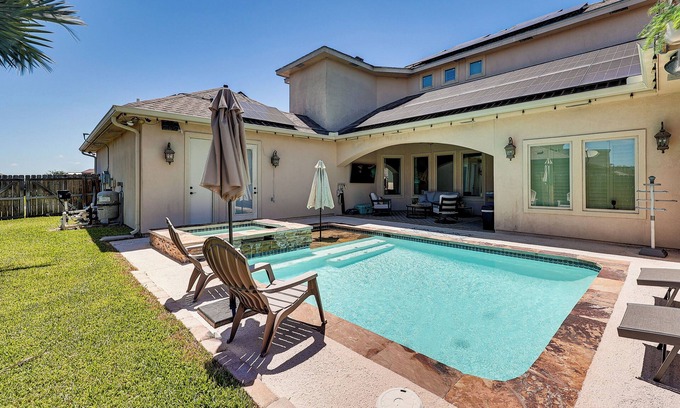 Celebrate your UTRGV connection at this 3-bedroom, 2-full and 2-half bath Edinburg vacation rental — perfect for campus visits, alum reunions, or cheering on the Vaqueros! Make memories splashing in the private pool, grilling under the pergola, or shooting hoops on the driveway court. After the fun, gather in the game room or relax on the patio, then head into town for Tex-Mex favorites.