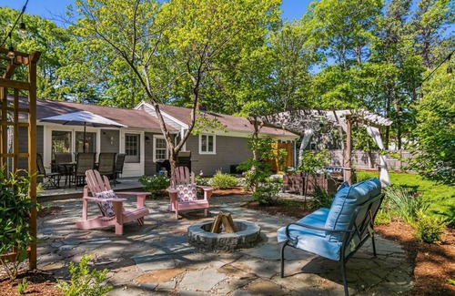 Beautiful hardwood floors throughout, the home features a large primary bedroom with a new (very comfortable) queen bed (60" x 80") and a smaller bedroom with two new twins. We also have a Pack n Play for the little one. There is a formal living room for chatting before you head out to Main St. Hyannis for dinner or recap the day’s adventures. There is an enormous great room with six large windows, two skylights and two sliders to provide a ton of natural light. In this room you will find a farmhouse dining table for 6, a large sofa, coffee table and big Smart TV plus puzzles for the occasional rainy day. The sliders lead out to a large deck on one side and another large, new deck on the other. There is a new, professionally designed and landscaped backyard with a new patio and fire pit for toasting marshmallows and listening to the crickets at night. There is also a pergola with plenty of patio furniture to relax. And of course, there is a brand new, requisite, Cape Cod outdoor shower for rinsing off after a long day at the beach. If you need to get some work done, there is a desk and chair with a monitor, keyboard and mouse. Hook up to your laptop with a HDMI port and check in so the boss knows you are “working from home.” Feel free to bring your bikes!