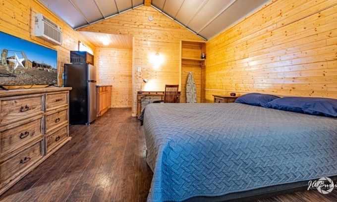 Completely private detached cabin. Comes with 1 Double bed, a Kitchenette - Fridge, Microwave, Cooktop. A Private Bathroom and Shower. Flat Screen TV, Free Wifi. Free Laundry Room, Ice Machine & Pool Table on Property.