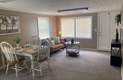 This Shallotte house has1 cozy bedroom with a full bed and sitting area. The bedroom also has room darkening curtains and extra linens. This quaint property features TV, Wi-Fi, AC/Heat and a kitchenette. The kitchenette includes a full size refrigerator, a griddle, coffee pot, microwave, and an air fryer. The bathroom offers towels, hair dryer and shower. Additionally, there is a living room space with TV, DVD player, movies, and a futon. Kickback, relax, and enjoy everything Shallotte has to offer. The sidewalk right beside the house leads down to the Riverwalk where there are swings, and picnic tables. Across the street is Mulberry Park with a playground and concerts in the park. Certain times of year they also have the Farmers Market in the park. There are lots of restaurants within walking distance and a laundromat right across the street.