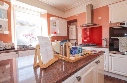 Amenities: Gas central heating with electric fire. Electric double oven and gas hob, microwave, fridge/freezer x 2, washing machine, dishwasher, TV with Freeview, DVD, CD/radio, WiFi, selection of books, games and DVDs. Table Tennis on 2nd floor. Fuel and power inc. in rent. Bed linen and towels inc. in rent. Cot and highchair on request. Ample off road parking. Front patio with furniture. One well-behaved dog welcome. Sorry, no smoking. Shop and pub 3 mins walk. Harbour and beach 5 mins walk. Note: Max 10 adults. Note: No stag/hen parties. Note: Check-in 4pm. Note: This property has a Good Housekeeping bond of £450