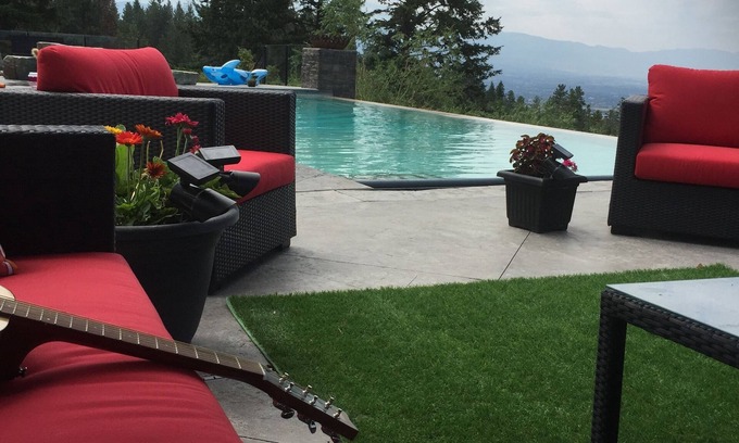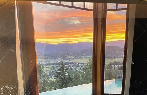 Five bedrooms, huge kitchen, 40x20 infinity pool, 40 mile view of the valley, 15 mins to Kelowna, 10 mins to Lake Country. Very private and quiet getaway for a family. Absolutely no parties. Also a suite available if required. Zoned RU6 so not subject to short term rental restrictions
