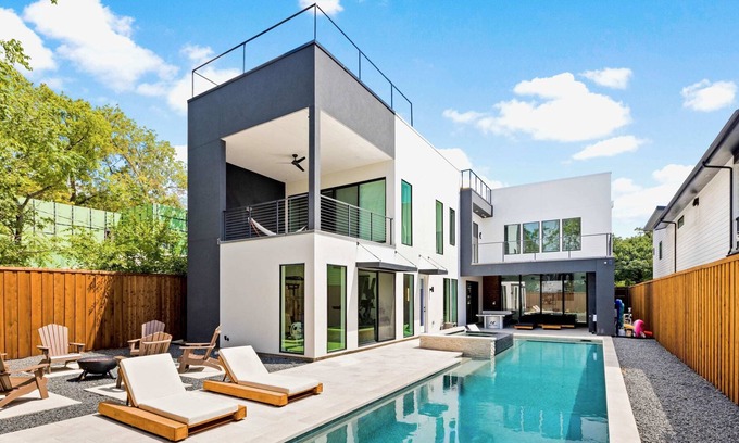 Step into luxury as you walk inside this 10-guest capacity dream home! We're talking gorgeous views, a sprawling rooftop patio, outdoor projector screen, state-of-the-art private in-home gym, heated outdoor pool and jacuzzi hot tub, and so much more! You'll feel like a movie star staying in this show-stopper space, plus you'll be close to all the action - in the heart of Lowest Greenville & within 5-10 mins of anywhere uptown/downtown.