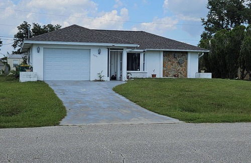 Unwind in Englewood at this peaceful house. With 2 bedrooms, including 1 king bed and 1 queen bed, guests can enjoy a tremendous living room with an additional king bed. Pets are welcome. This excellent property offers amenities like a hair dryer, AC, an iron, heating, a garage with 50 amps to plug in your electric car, and a fire pit in the lanai. Experience the magic of Englewood at our cozy house.