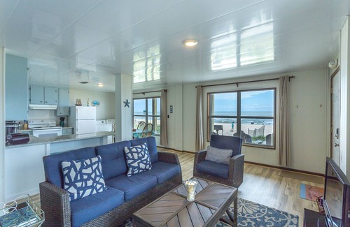 Enjoy the sound of the waves from the porch of this beach front ground level apartment!
