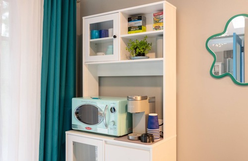 Nestled on a private, hushed road, this cottage features a queen bed, a full bath, a cozy sitting room, and a convenient kitchenette.