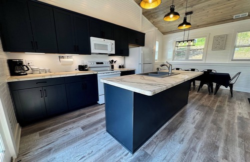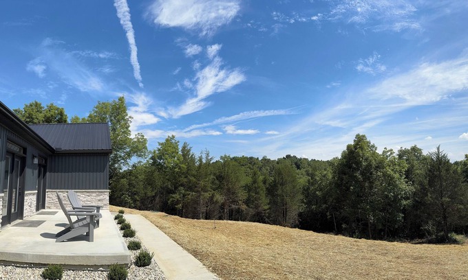 This brand new modern cabin, located on 100 acre, is a great place for a group of up to 6 to stay in a peaceful setting and enjoy creation. With two bedrooms, and a full bath this cozy house set among the trees is a great place for a couple's getaway or vacation with the kids.