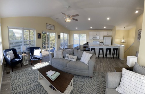 This brand new farmhouse located on 100 acres is a great place for a group of up to 12 to stay in a peaceful setting and enjoy creation. With four bedrooms, two full baths and a rec room in addition to the living room, dining room and kitchen, there is plenty of room to enjoy some quality time with family or friends.