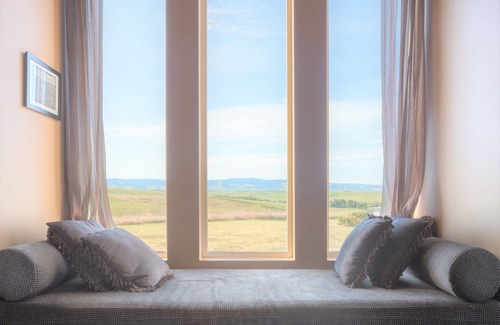 Simple. If you’re in Walla Walla and experiencing mile upon mile of utterly gorgeous countryside sounds good, when Grape Hill is available you stay here. Period. Experience a setting like no other- imagine a secluded beach with mile upon mile of panoramic views, now have it all to yourself, add cool interiors, a fine kitchen, and lots of great things to do within minutes. The inner artist & photographer & chef inside you will come out and want to play! The drive in to the center of Walla Walla is nothing. No bother at all to go wine tasting and then come home to change clothes and be right back in Walla Walla. Probably no more than going to your grocery store. The biggest difference is that you get to Grape Hill and everything slows down. Whether it is winter beside the fireplace watching the clouds through walls of huge windows or summertime dining out at Big Table or staying cool under shade with the misters and listening to the pheasants, Grape Hill is an incredible joy.