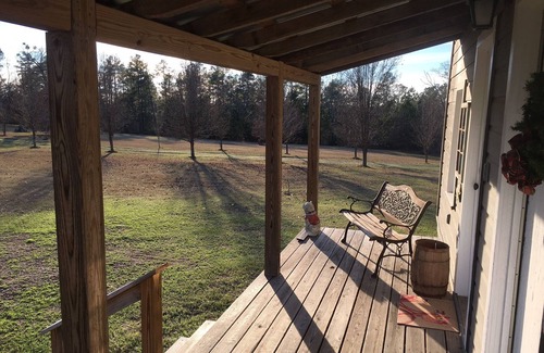Located 7 miles from Georgia College and State University, and Georgia Military College, and 10 miles from Lake Sinclair, this old tenant house is part of a former farm on Fox Hill. The main house was built in circa 1873, during the Reconstruction. This cottage was moved in 2011 from a farm 14 miles away. We remolded and and modernized it, while keeping the original warm atmosphere. It sits 100 yards from the main house, with easy access. There is a galley kitchen with micro wave, toaster oven, refrigerator, keurig coffee maker, and sink. Two large cozy bedrooms provide additional atmosphere. The large shower and designer bathroom sink are added features. There is a sitting room adjacent to the kitchen area with television and DVD player, plus table for eating and games and relaxing and talking. . A favorite feature is the front porch that has a breeze most days, and a view of the main house, pastures and forest, and amazing views of the stars at night. Plenty of parking in large pasture for boats or trailers. You will have privacy and yet not far away from hosts.