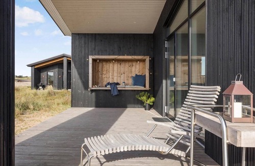 Lyngbakken 9 in Nr. Vorupør offers a modern holiday apartment that seamlessly blends stylish decor with a tranquil setting and picturesque nature. It features three spacious bedrooms, including three double beds and two single beds, accommodating families with ease. The open kitchen is fully equipped with a dishwasher, oven, microwave, refrigerator, and coffee maker, ensuring a convenient cooking experience. The living area, enhanced by a Smart TV and cozy ambiance, serves as a perfect gathering spot. The apartment boasts two bathrooms, one of which includes a luxurious freestanding bathtub, alongside a practical shower. Additional amenities include Wi-Fi, a washing machine, dryer, and underfloor heating for year-round comfort. Guests can unwind on the large terrace, ideal for socializing, while the nearby attractions, including the stunning North Sea, are just a short walk away. This is where unforgettable memories come to life.