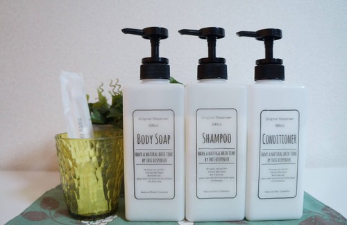 ・ Hair shampoo, hair conditioner, body soap