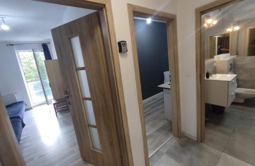 1110 Śmiałego 39 - Tanie Pokoje w Apartamencie - samodzielne zameldowanie - self check in offers accommodations in Poznań, 3.6 miles from National Museum and 3.8 miles from City Hall. The apartment, set in a building dating back to 2019, is 3.3 miles from Poznań Grand Theater and 3.5 miles from Royal Castle. The apartment provides city views, a children's playground, a 24-hour front desk, and free Wifi is available. The units come with a balcony with garden views, a well-equipped kitchen, and a flat-screen TV with cable channels. At the apartment complex, every unit has bed linen and towels. Philharmonic is 3.8 miles from the apartment, while Poznan Central Train Station is 3.9 miles away. Poznań-Ławica Henryk Wieniawski Airport is 7.5 miles from the property.