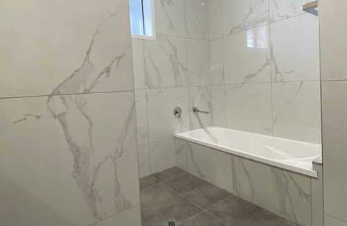 Guests will be struck by the sheer size of the light-filled airy house. The master bedroom, with its queen bed boasts an en-suite and walk-in robe.