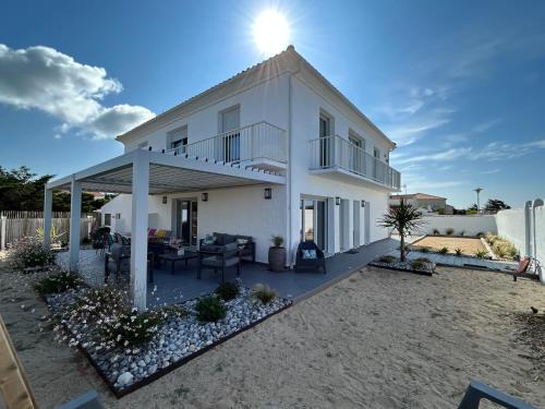 12 pers, sur la dune, PMR, spa, hammam, salle de sport is a recently renovated villa in Barbâtre, near Sables d'Or Beach. This beachfront property offers access to a balcony, free private parking, and free Wifi. The spa and wellness center includes a hot tub, hammam, fitness room, and steam room. Featuring a terrace and garden views, the spacious villa includes 6 bedrooms, 2 living rooms, satellite flat-screen TV, an equipped kitchen, and 4 bathrooms with a walk-in shower and a hot tub. The air-conditioned unit at the property features a bath and a dressing room. The accommodation is non-smoking. Guests can relax in the garden at the property. Casino of Saint Jean de Monts is 17 miles from the villa, while Pornic Train Station is 28 miles from the property. Nantes Atlantique Airport is 41 miles away.