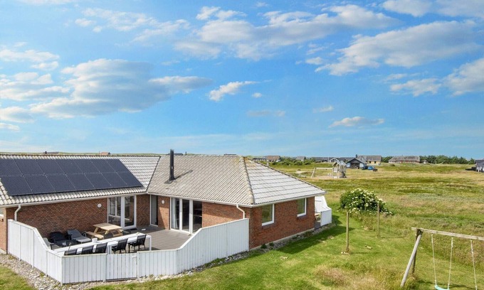 Tasteful and bright cottage with whirlpool, sauna and activities suitable for several families located approx. 200 meters from the roaring North Sea. The house is handicap friendly both outdoors and indoors with i.a. paving stones with easy access to the house. The house was renovated in 2015 with a large activity room with 4-person whirlpool, Flat screen TV, Chromecast, PlayStation 4 with extra controls and plenty of space to play table tennis, pool, air hockey, table football and electronic darts. The room also has a staircase to the loft, sauna, bathing environment, shower, underfloor heating and access to a large terrace. The house is well furnished with a combined living room and kitchen with i.a. ceramic hob, separate oven and dishwasher. In the living room there is comfortable furniture, Flat screen TV with associated Chromecast, to which you can stream via your own streaming services, free, wireless internet and wood stove to spread coziness and warmth on a cool summer evening or an autumn evening with rain and debris. Large bathroom with bathing area, shower, underfloor heating and washing machine. The house has several terraces where you can enjoy dinner while the sun goes down over the North Sea as well as swings and sandpit for the kids. There is a large terrace with gas grill, garden furniture, table and bench set and 2 sun loungers. There is also a fenced dog yard. As a guest you have free access to the gym and internet café in Harboøre Hallen as well as free use of e.g. golf simulator, billiards, pool, table tennis, squash and badminton court. Not for rent to youth groups.