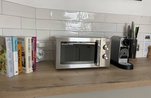 Amenities: Electric fan double oven, four-ring electric hob, fridge/freezer, microwave, dishwasher and coffee machine.