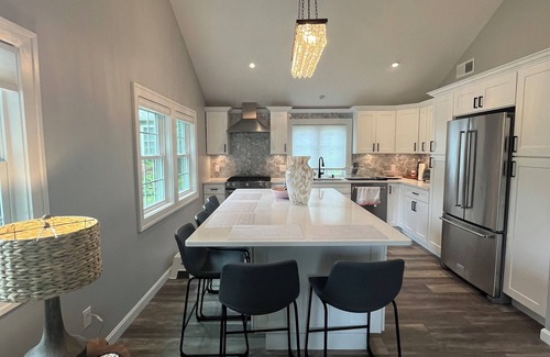 Experience the perfect blend of comfort and luxury in this newly renovated, never-before-rented retreat, ideally located in Sandwich, MA. This pristine home features two queen bedrooms, a cozy loft with a full bed, and two full bathrooms with showers, comfortably accommodating up to five guests. Enjoy the updated kitchen with stainless steel appliances and a large island with stools, a cozy living room, and a den, all equipped with central A/C and modern entertainment options including TVs with streaming capabilities.