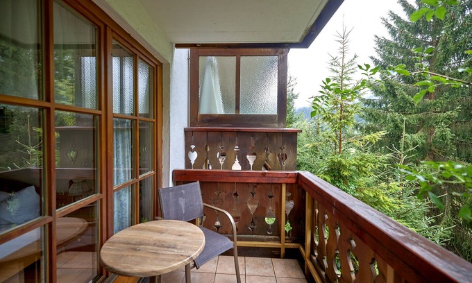 The accommodation is equipped with the following items: internet (Wi-Fi), hair dryer, balcony, sauna, indoor hot-tub, central heating, open-air parking near the building, 2 TVs, tv satellite (Languages: German).