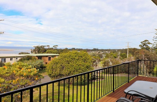 Fantastic views of lake, inlet and ocean. Comfortable 4 bedroom holiday rental, has catered for many visitors to Mallacoota over the past years. Enjoy breakfast, lunch or a BBQ on the balcony while you take in one of the best views in town.