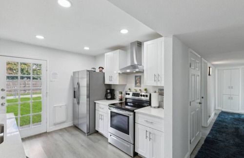 Step directly into a spacious living room & kitchen that are great for entertaining. We've provided pots, pans, silverware, cups & cooking utensils should you decide to stay in for the night! 3 bedrooms provided ample sleeping space for you & your guests. Please feel free to enjoy our beautiful backyard!