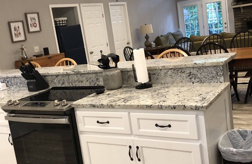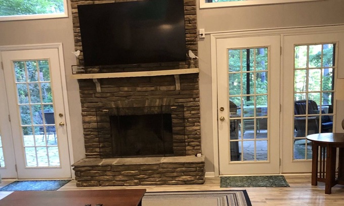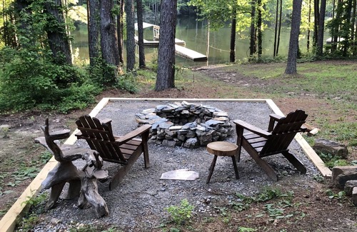 Enjoy your days swimming from the private boat dock. Spend your evenings relaxing in the beautiful screened-in porch with vaulted ceilings or making s'mores by the stone firepit - both of which have great water views.