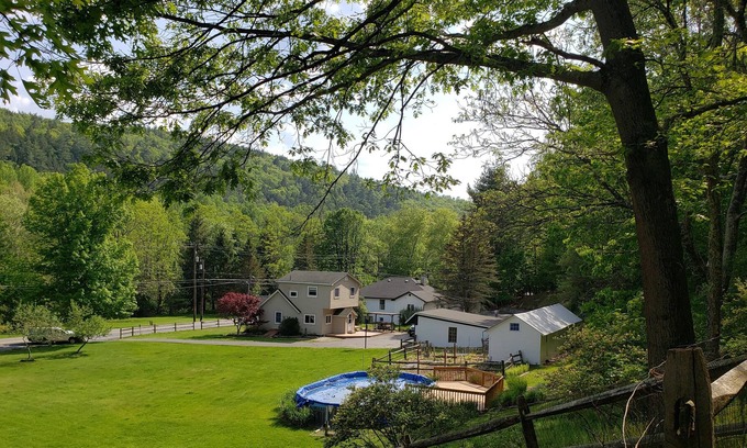 Your very own rustic water-front retreat of upto 22 guests, at Pocono Mountains, on Lackawaxen River! 1000-ft private river-front for best Fly Fishing, Ski Big Bear (Ski and Tubing 6miles away with special discount), fire pit, huge pool, 2 large decks on 17 acres with gorgeous river & mountain views! Fully AC'ed 9 bedrooms - 4 full baths + Extra Shower. Landers River Trips - Rafting, canoeing, and tubing 13 mins, Tusten Mountain Hiking Trail 12 mins, Hawk Nest Overlook 25 mins, Bethel Woods Arts Center - Woodstock 33 mins, Ski Big Bear resort 12 mins, Monticello Casino & Raceway, Resorts World Catskills/Indoor Waterpark - 44 mins