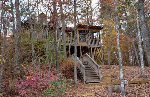 This Beautiful Cabin was taken timber by timber from its original location in Etowah County, Alabama. The cabin is pre-civil war in construction, it was reconstructed using the old mortar technique and then added on to in its current location. The Cabin sits on a private road behind a gate. Secluded is an understatement. Fenced yard for your doggies!. It is situated on a bluff overlooking the Crystal Clear East Fork of the Little River, just below a waterfall which can be heard as soon as you open the door to the car during the wetter seasons. We have an inviting front porch with a cozy antique swing where many a book has been read in the fragrant mountain air. The Cabin itself retains all of its antique charm as you enter the Great room with its enormous original stone double sided wood-burning fireplace serving the great-room and the Master bedroom both located on the lower floor. The Upstairs is separated by a staircase that leads to a private spacious upper loft that contains two Twin beds and a Queen Bed. There is a fully functional kitchen with stainless appliances/dishwasher/stove/oven/refrigerator/freezer. One Bathroom Downstairs, with High Efficency Maytag Washer and Dryer. Flat Screen TV with Apple TV/DVD/Inside/outside Stereo/Xbox/Wireless Internet/Dish Network/Central Heat and Air. Master Bedroom overlooks a large elevated back porch and the river can be heard from an open window. There is a large stone hearth wood burning fireplace in the bedroom. The Bedroom opens onto a cozy screened in porch with a 6 person water therapy spa/hot-tub. There is a charcoal grill on the back porch. There are steps to the fire-pit and picnic area overlooking the river, and steps to the river itself where depending on the water level you can swim/float/fish/lounge or sit in the crystal clear mountain water. The house is about 10 minutes from Downtown Mentone for antique shopping/cultural activity/or fantastic food and music at the Wildflower Cafe or other restaurants. The canyon is also about 10 minutes away, and 5 Minutes from Alpine Boys Camp, Desoto State Park, Desoto Waterfall, and Lake. There are wildflowers galore and wild blueberries and blackberries and plums along the road depending on the season. Wildlife abounds everywhere. The Tin Roof provides a great sound to sleep to when it rains.
