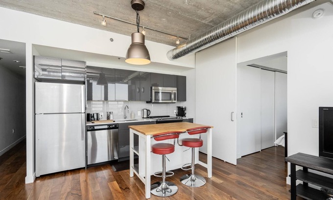 With 1 bedroom, 1 bathroom, a TV with a Fire Stick set up to enjoy Netflix(bring your login credentials!), and complimentary, high speed WiFi. The kitchen is equipped with stainless steel appliances, quartz countertops and completely stocked with cookware to prepare your favourite gourmet meal!