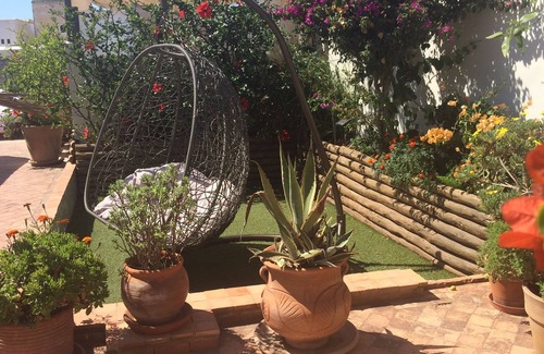 In the center of the tourist places, in a traditional Riad with panoramic terrace at 5 min from the ocean room in a guest house with table d'hôtes, discover the souk and the ocean at 5 min, the Oudayas at 5 min. Breakfast is not included. (5 euros per person)