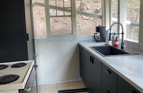 The newly renovated kitchen is very well equipped and provides access to a small deck with a Weber propane BBQ.