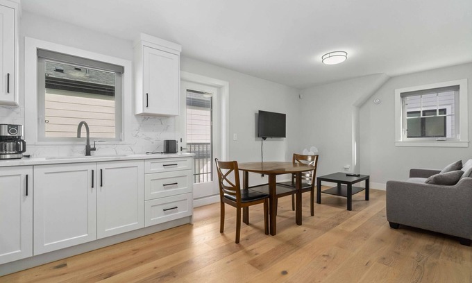 Welcome to our charming 1-bedroom coach house located in a tranquil and secure neighborhood. This delightful retreat offers both comfort and modern versatility, making it an ideal choice for your stay.
