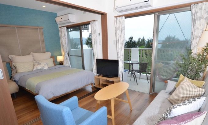 A great healing ocean view with unobstructed or very popular kitchen with kitchen The view of the remote island following the offshore is amazing Watch the sunset over the sea and sway with a balcony hammock