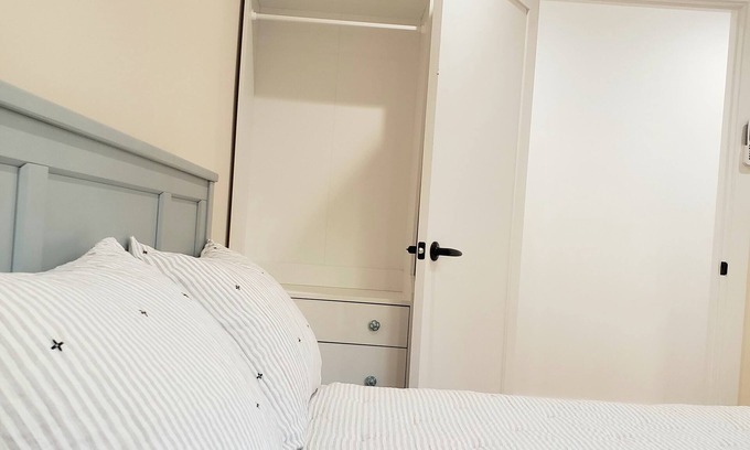 Delightful beach themed one bedroom guesthouse. Outdoor bistro cafe table. Internet & utilities included. 43" Smart TV. Kitchenette/Living Room with new appliances (fridge, air fryer/toaster, convection microwave, hot plate), Bar Table, and sofabed. Bedroom with ac/heater, closets, dresser, desk, & queen-size bed. Hardwood floors. Street parking. Near prime Glendale downtown and walking distance to cafes, trendy eateries, shops, and Mall (Glendale Galleria & Americana). Close to 134 & 5 Freeway.
