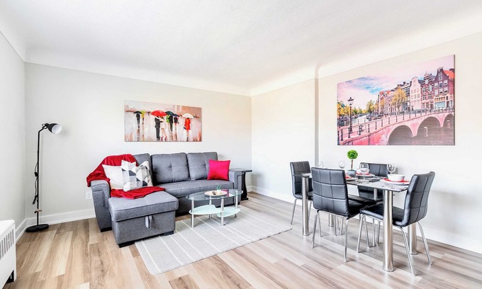 This warm and cozy Hamilton 1 bedroom apartment offers all the amenities you'll need during a quick getaway - perfect for the solo traveler, couples, or small families! Enjoy preparing your dinner in your fully equipped kitchen. The space also features an open-concept living area with sofa bed, high speed wireless internet and smart TV.