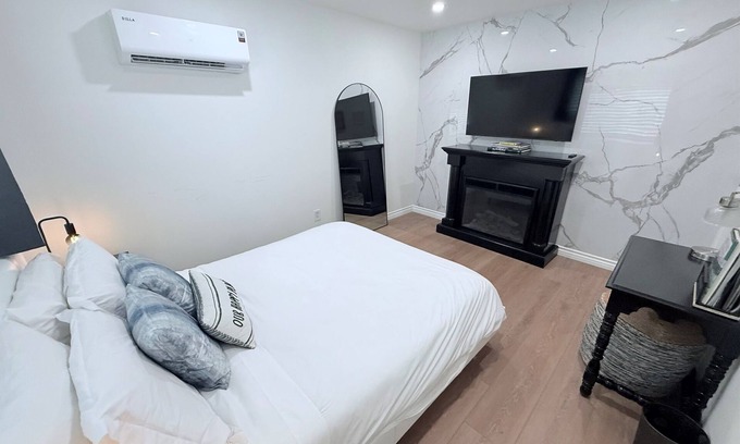 Modern Simi Valley Guest Suite – Private Entry, AC, Full Kitchen, Fireplace & Patio