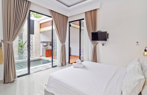 Our one-bedroom pool villa offers utmost privacy, nestled in tranquil surroundings yet conveniently close to the vibrant offerings of Seminyak and Legian. Relax in the spacious bedroom featuring a luxurious king-size bed and a well-appointed en-suite bathroom.